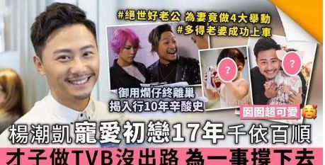 早前杨潮凯接受采访的时候说到:他和老婆17岁开始拍拖,直到28岁才和身为老师的女友结婚,多年来,两人一直十分恩爱。为了避免老婆伤心,杨潮凯做出了四大举动让其放心。第一个就是在TVB表明自己已然结婚,避免招蜂引蝶,第二个就是建立信任,不会偷看大家电话。第三个则是不会轻易说分手,第四个是不要闹交。