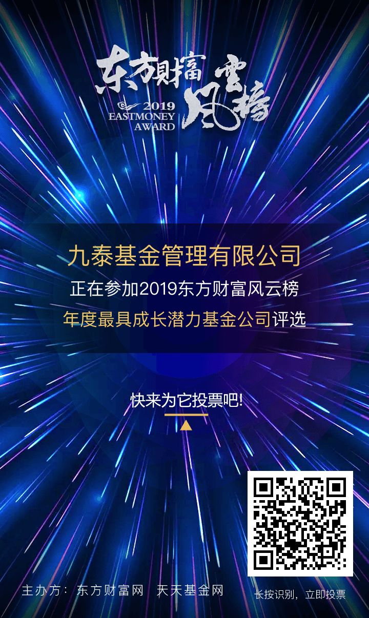 而此次已不是九泰基金首次入选东方财富风云榜。2018年12月,九泰基金获得2018年“年度最具成长潜力基金公司”。(该奖项由东方财富网、天天基金网颁发,济安金信协助评选)