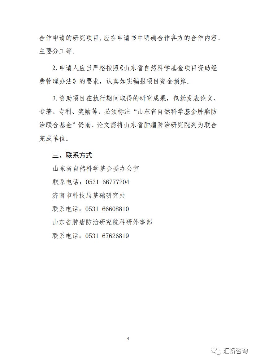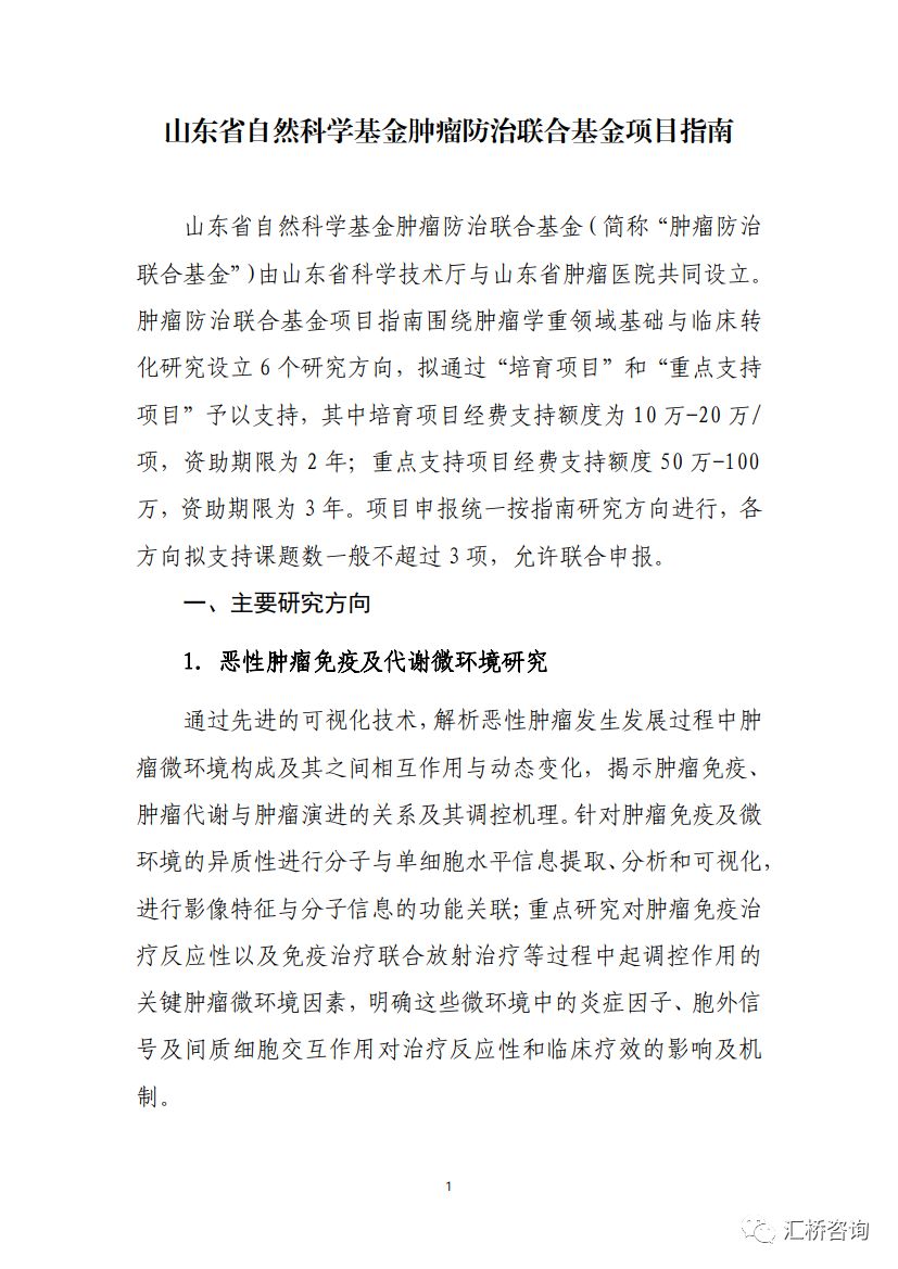 4.山东省自然科学基金肿瘤防治联合基金项目指南