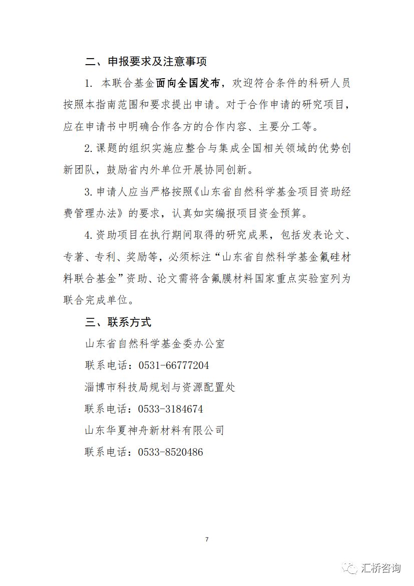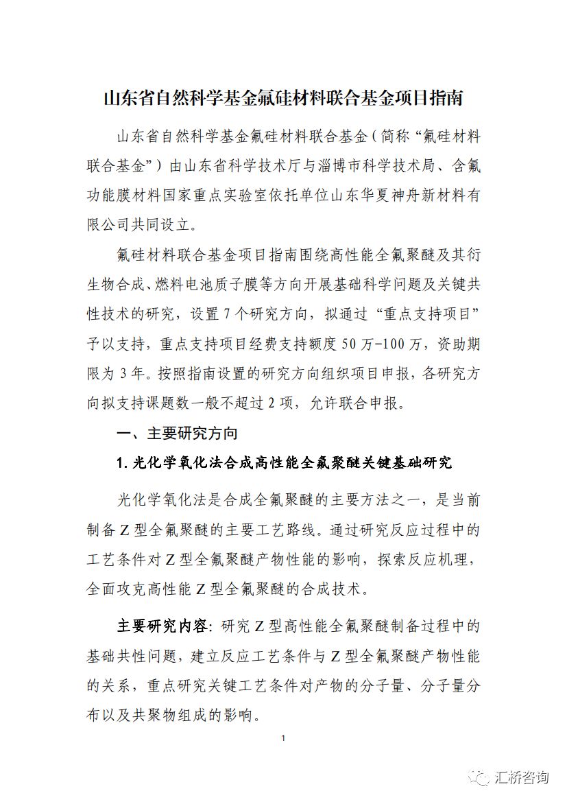 2.山东省自然科学基金氟硅材料联合基金项目指南