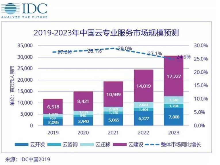 IDC:2019上半年中国云专业服务市场规模为55.8亿元