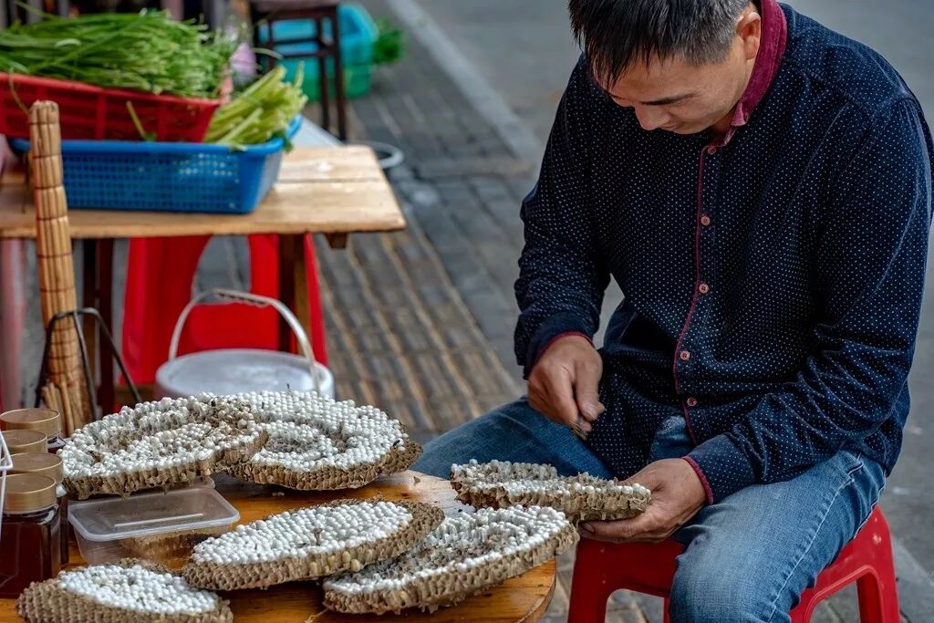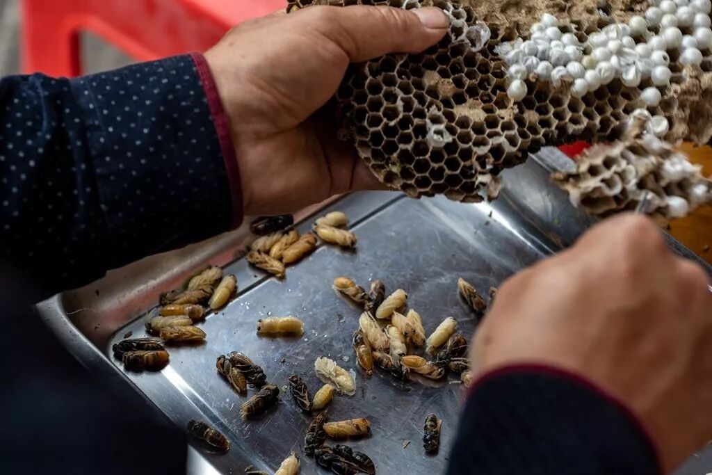 因为在小吴看来,马蜂竟然全身都是宝。小吴说,蜂窝里的蜂蛹含有很高的蛋白质,是难得的美味。