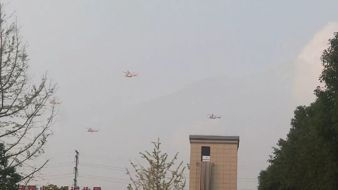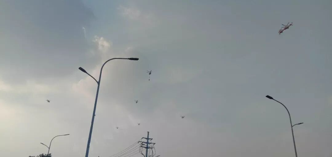 07绍兴滨海上空来了好多直升飞机,地面还拉起警戒线!