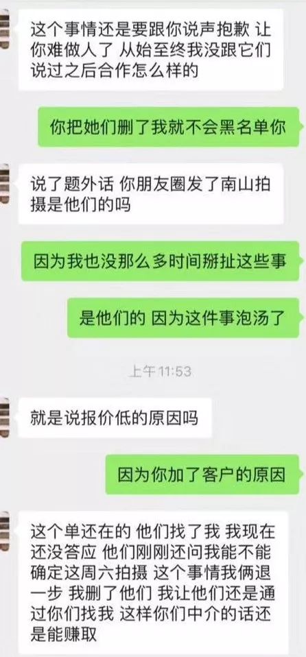 【主持人私加客户报低价,面对询问不解释、不删人】这事儿说大不大,演员行当里总有些人会遇到类似的事情。来自深圳的主持人F就遇到了这样一个姐妹儿J。活动前强调行规单线联系,活动后只字不提自己私自加客户,还是第三方说她报低价,来跟F说。F询问,J不答复、不删人,导致F另一活动泡汤,只能通报了。(感谢来源:匿名演员)