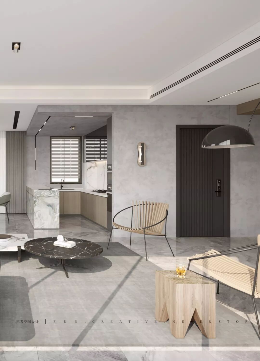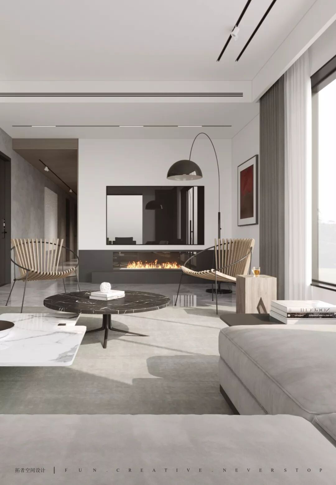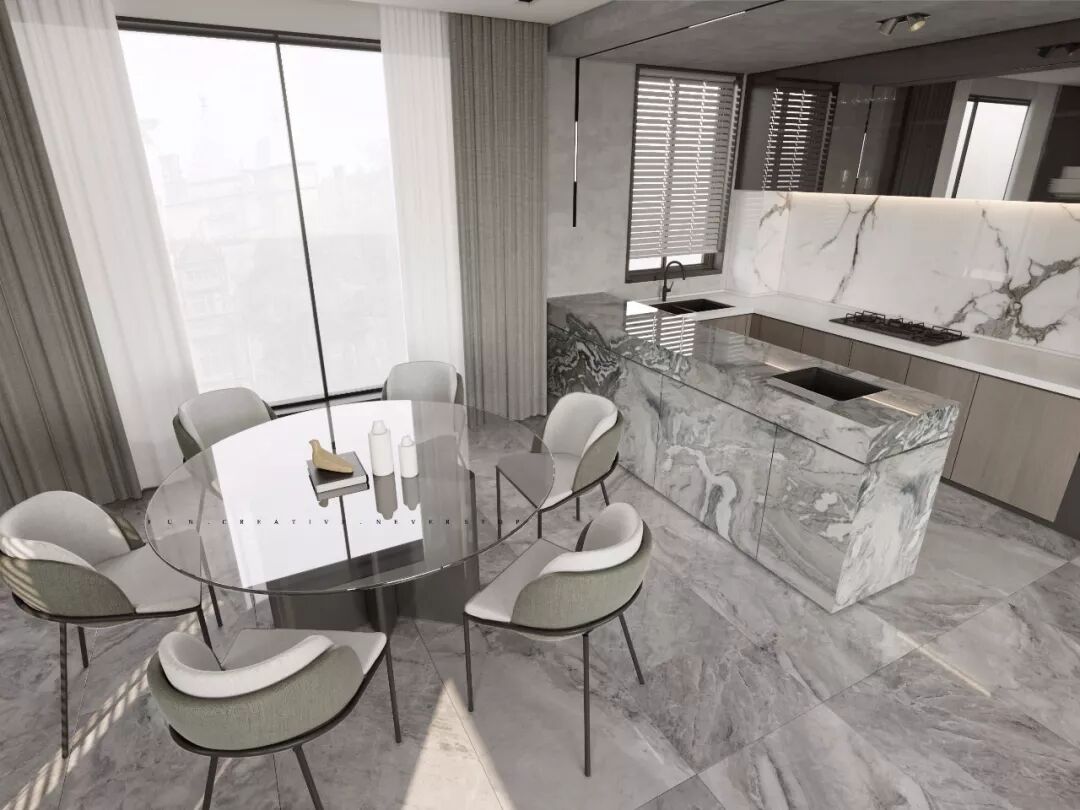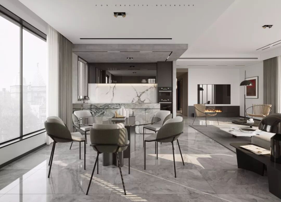 空间用色干净、简约,层次分明。黑、白、灰三种主题色让整个空间更显高级感。