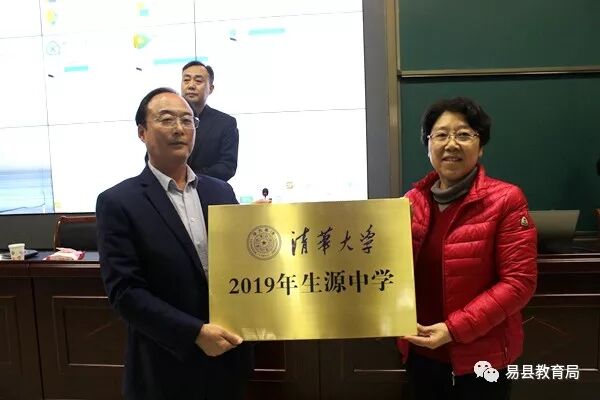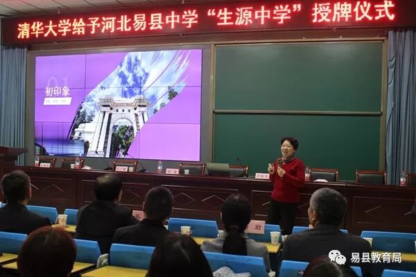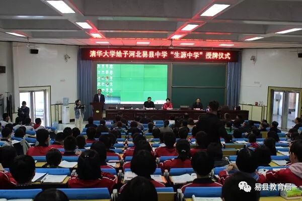 10月25日,清华大学生源中学授牌仪式在易县中学多功能厅举行,清华大学能源与动力工程系热能工程研究所教授、河北招生组组长刘青,易县人民政府副县长赵广鹏,易县教育和体育局局长许俊良,易县中学校长史建奇及学校部分师生参加仪式。