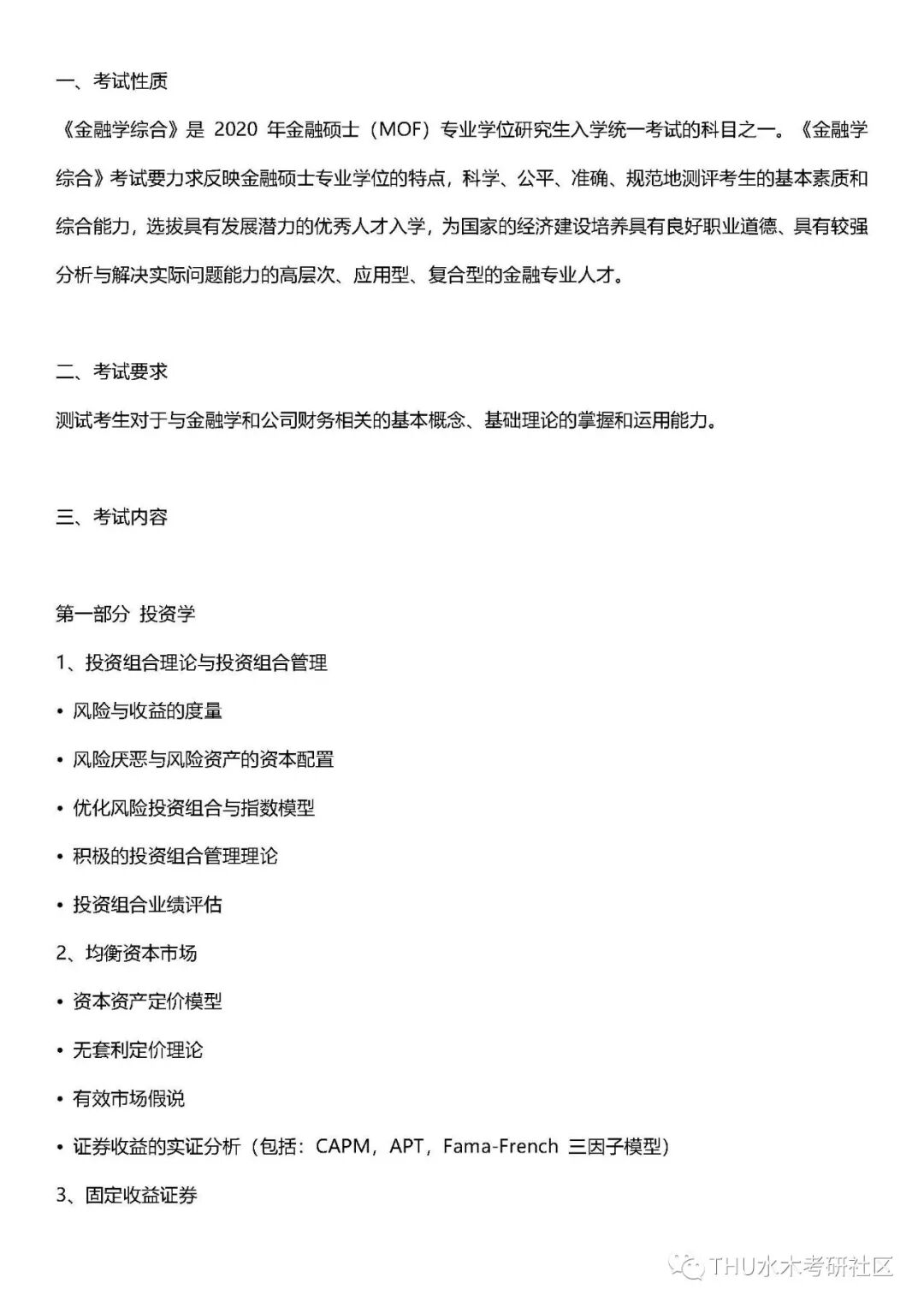 2020年清华大学考研431金融学综合考试大纲