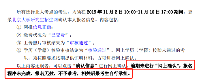 注:报考上述13所院校的同学,请在10月25日后在研招网的网报公告栏或高校网站查询相应的网上确认要求和程序,以及时间安排等信息。