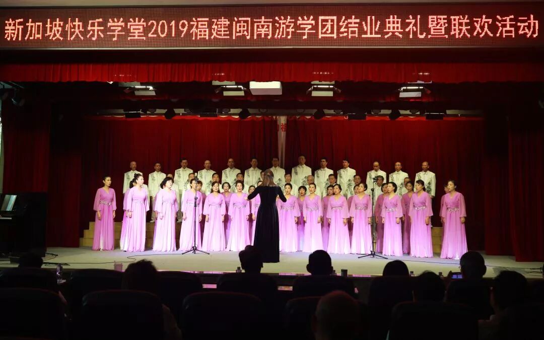 “独夜无伴守灯下,春风对面吹。十七八岁未出嫁,……”昨日上午,在泉州老年大学礼堂里,闽南经典歌曲《望春风》一遍遍响起,颇有韵味。尤为特别的是,演唱者是一群来自新加坡的老年朋友,他们一边演唱歌曲,一边跟随节奏摇摆身体,好不欢乐。