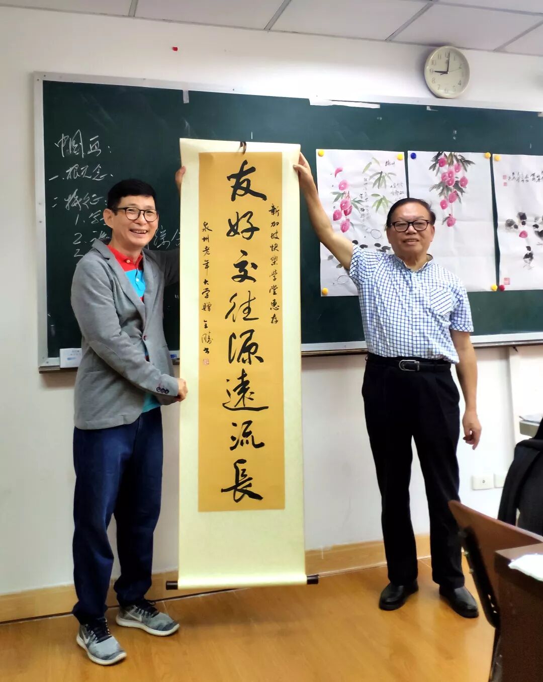 这些老年朋友是新加坡YAH!快乐学堂福建闽南游学团的成员,此行一共有56名老人,都是年龄在50-89岁之间的华侨, 10月23日和24日游学团在泉州老年大学进行游学交流。两天的时间,泉州老年大学为游学团精心安排了国画、中医养生、闽南语歌曲等特色课程,还策划了两地老年朋友联欢会,一系列的交流活动获得了游学团的广泛好评。