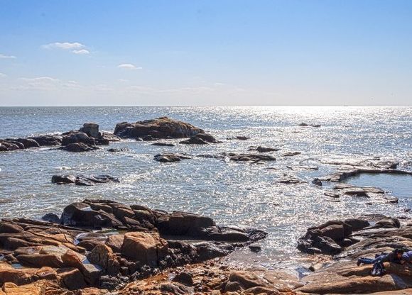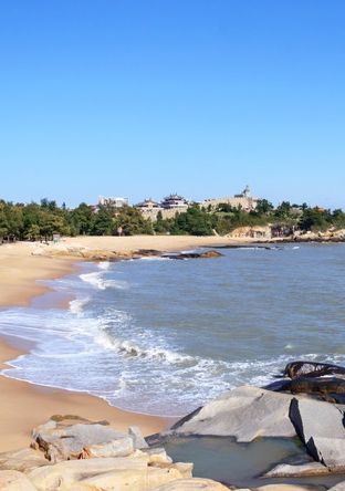 海边有岩礁和沙滩上的贝壳,沿海岸线至中间的沙滩,退潮时可以捉到小虾和螃蟹,岸边也有店可以吃烧烤。