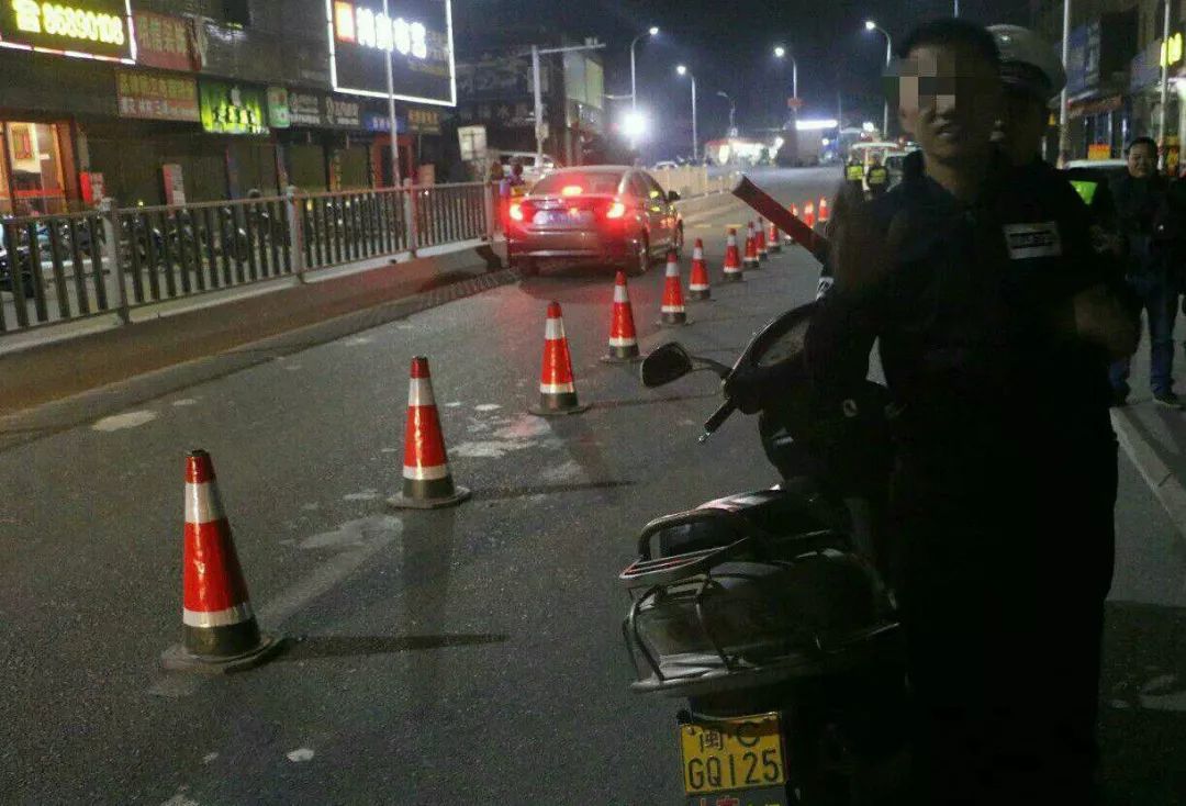 10月25日讯,23日晚,南安市公安局官桥派出所民警在官桥某路口设卡夜查酒驾。