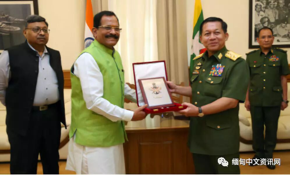印缅双边军事合作步伐不断加快,今年7月,缅军领导人敏昂莱对印度开展了长达9天的访问,在访问当中,缅军领导人不仅拜会了印度总理莫迪,还与印度军方多位重量级人物进行了会面,7月29日,印缅双方签署了军事领域的谅解备忘录,双方合作升级意图十分明显。下图为今年7月印缅两国签署MOU现场。