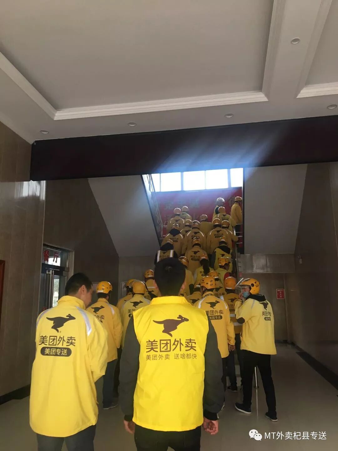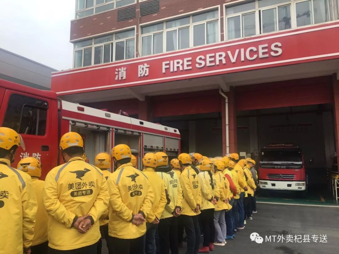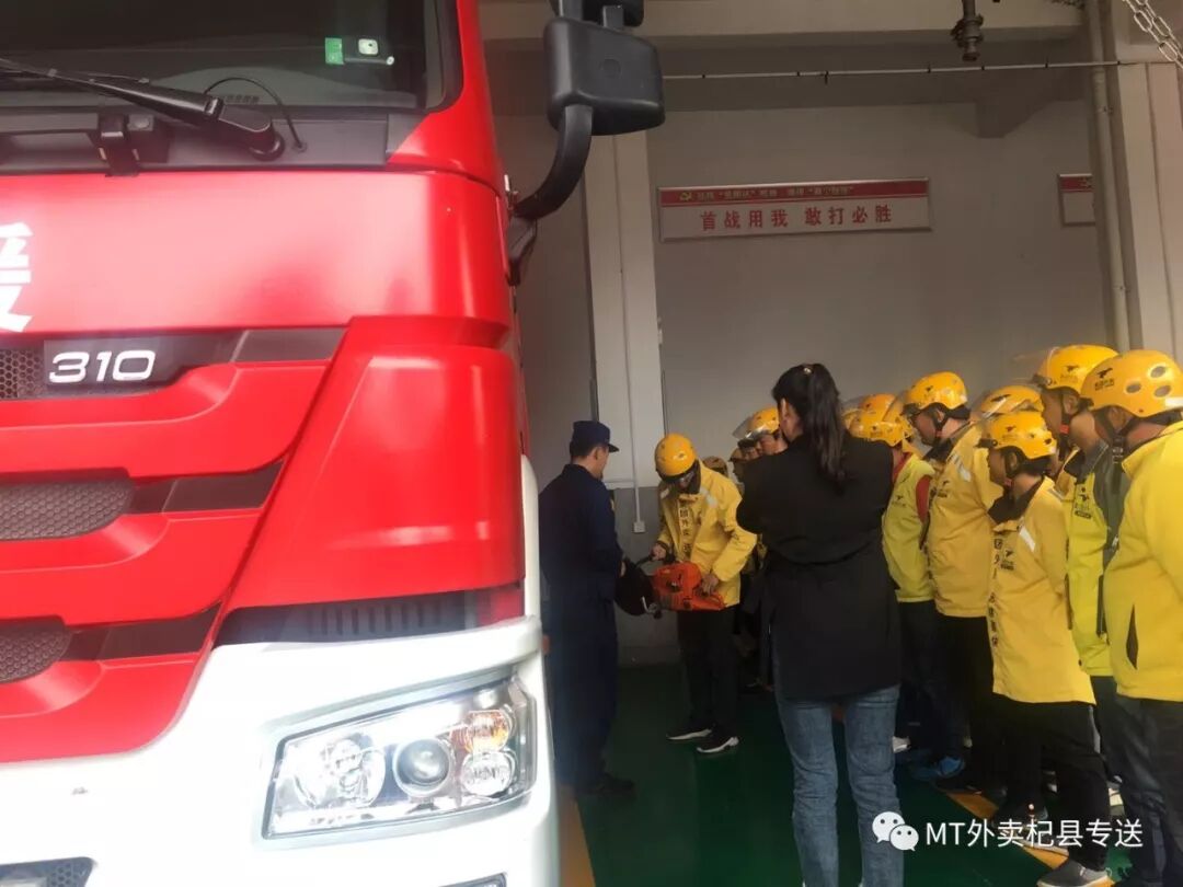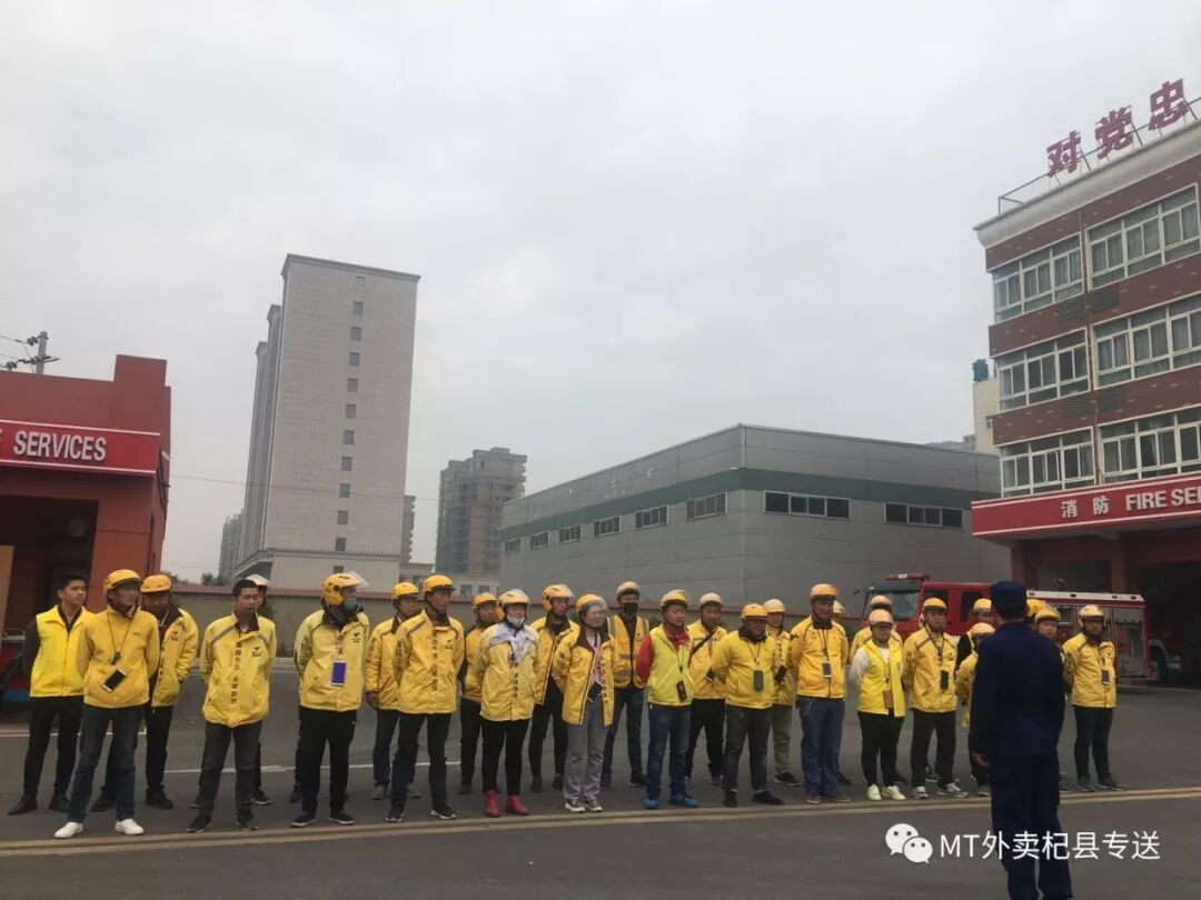 最后带着骑手们进行了一次模拟火灾疏散操作。
