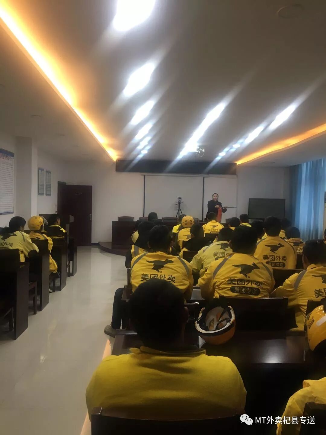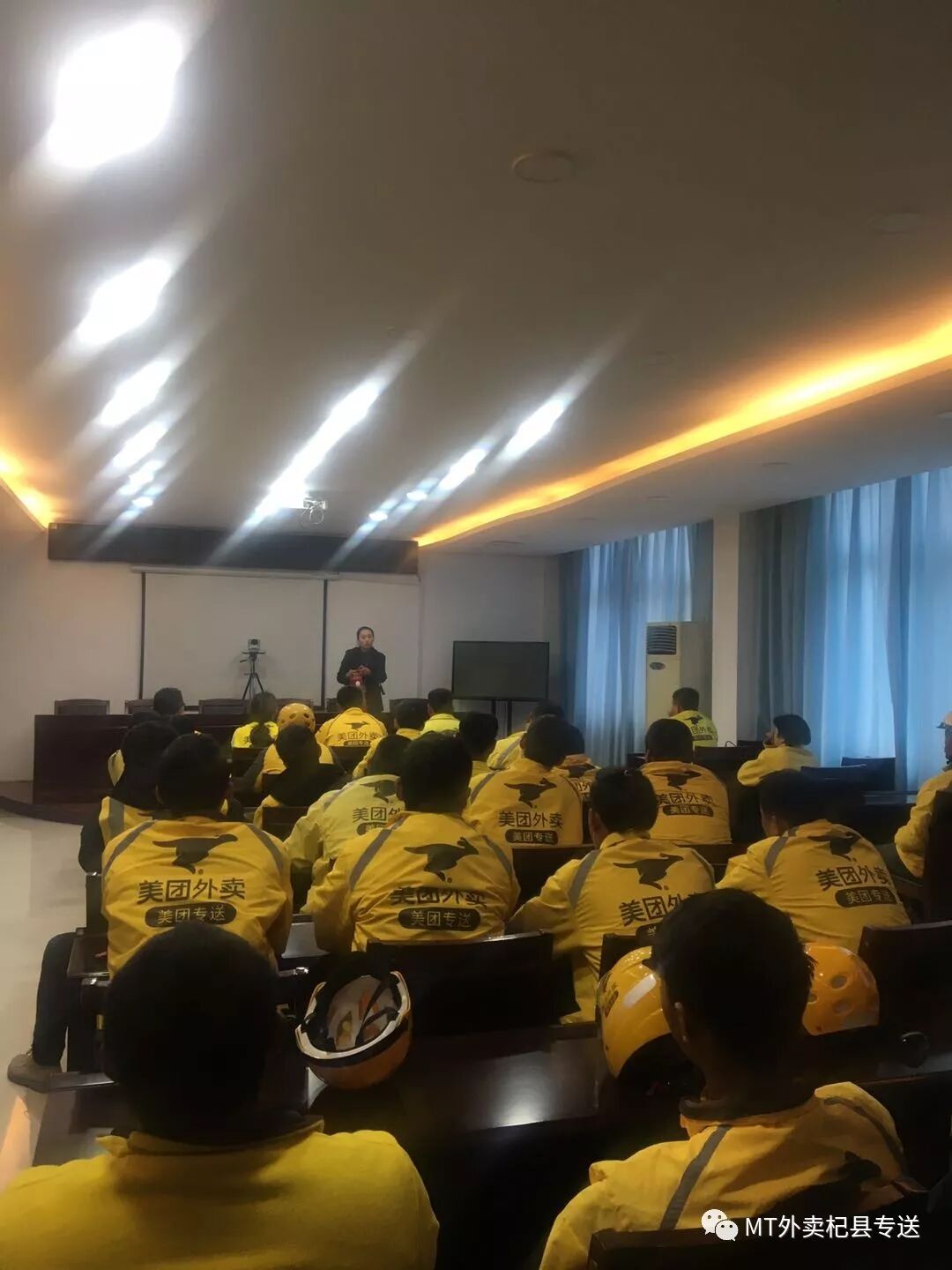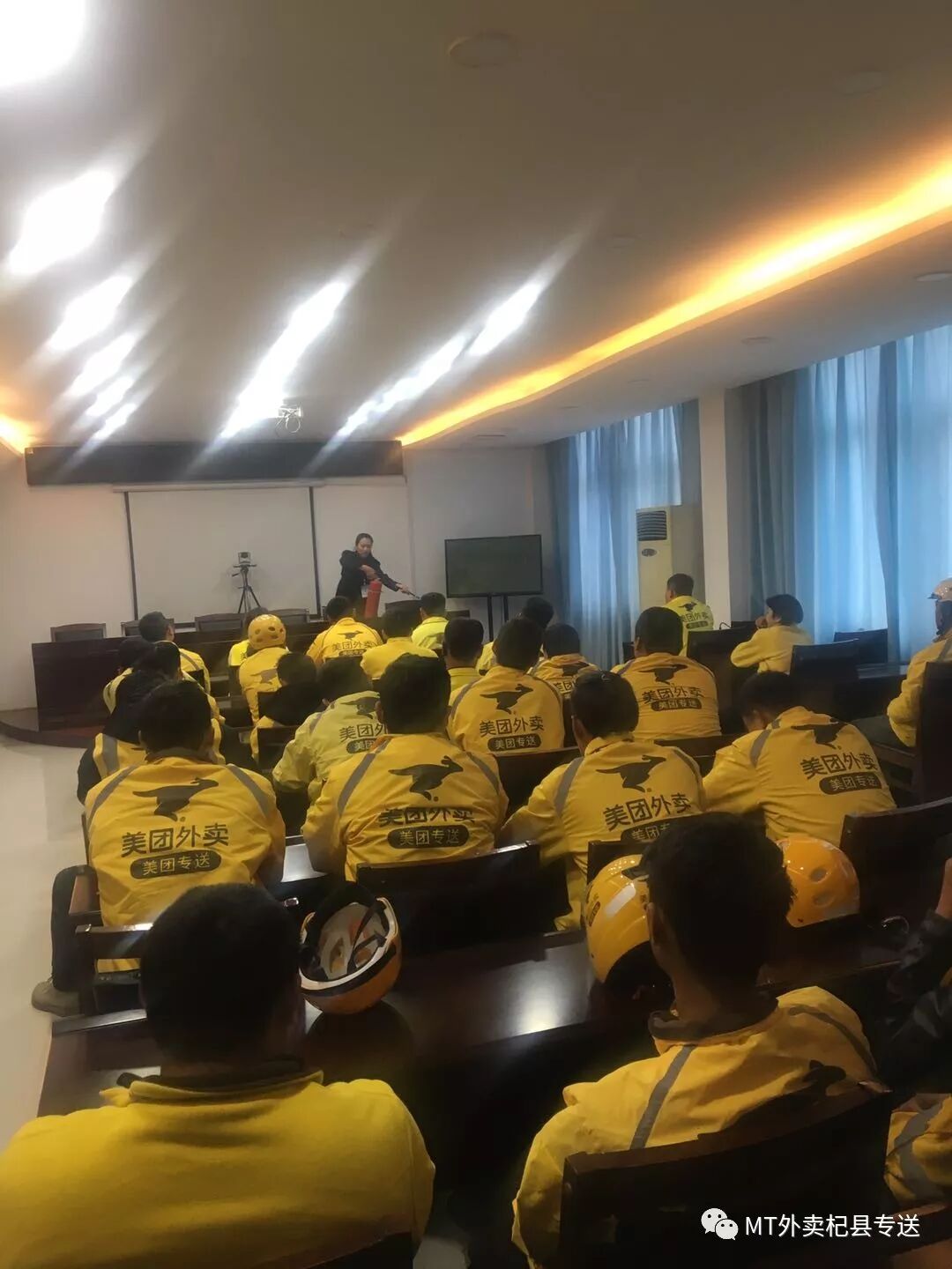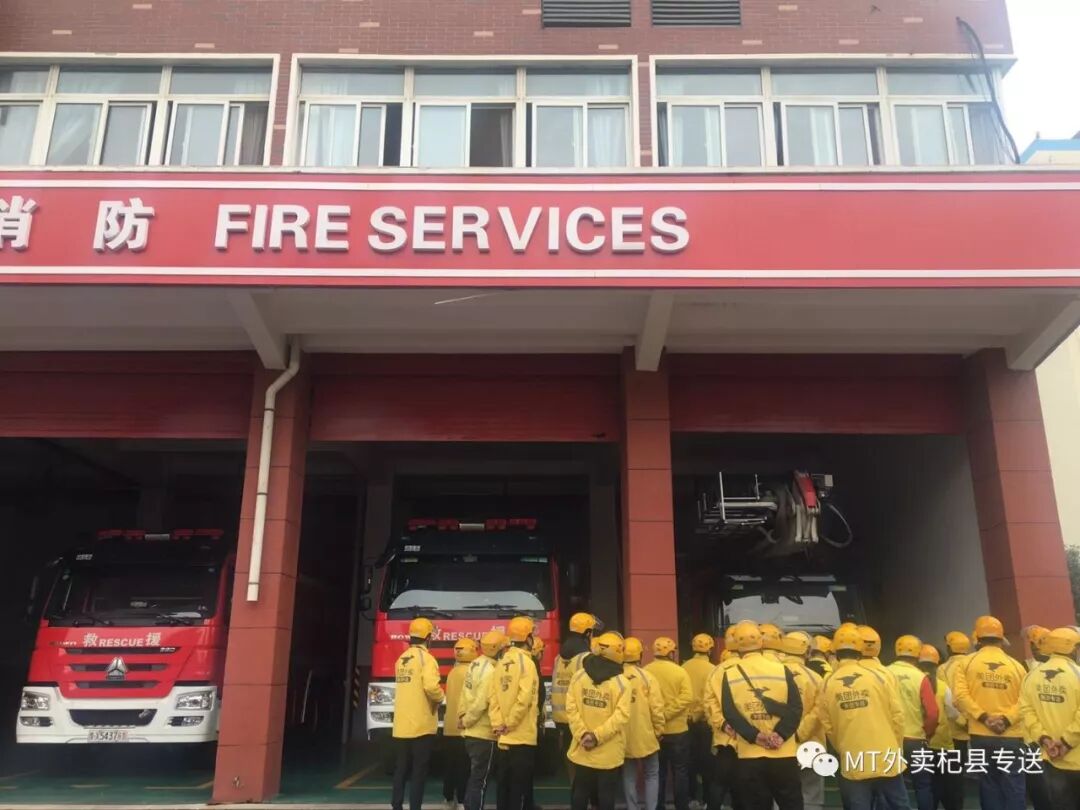 最后带着骑手们进行了一次模拟火灾疏散操作。