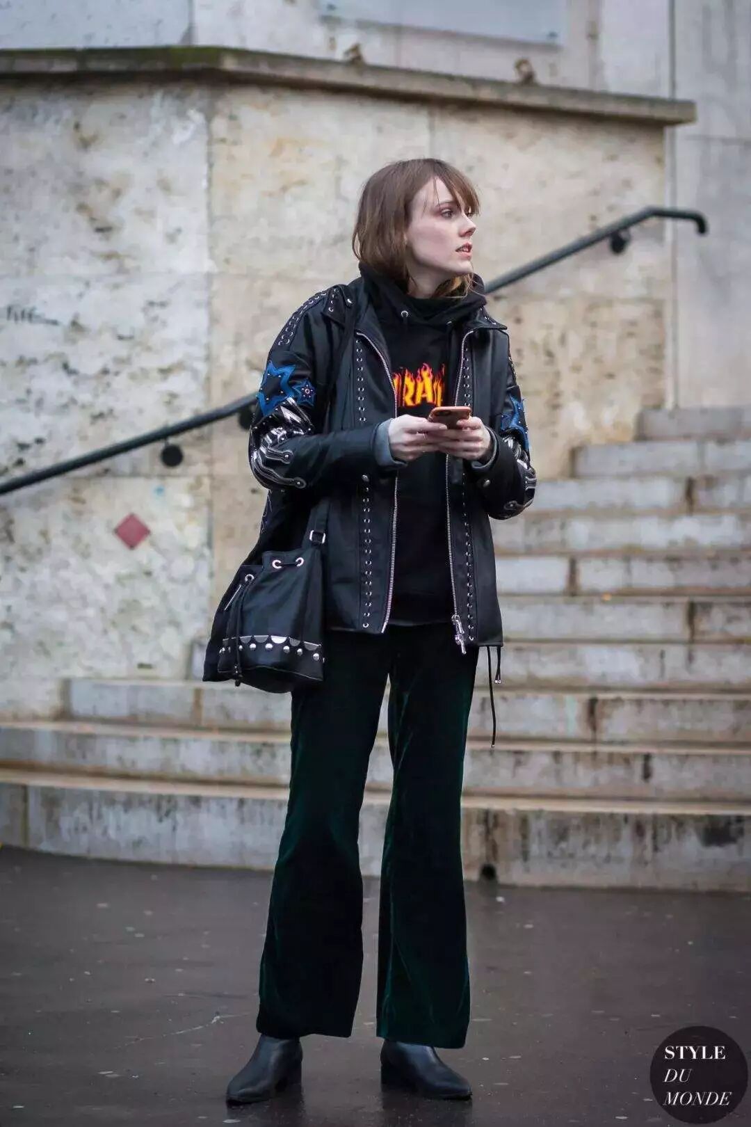 可搭配的下装不局限于牛仔裤,各种各样的休闲裤比如皮裤、灯芯绒裤甚至是运动裤都可以。不过皮裤要慎选,我非常不喜欢“不高不瘦腿不长穿不了”这种说法,但很不幸,皮裤就是这样一个存在。