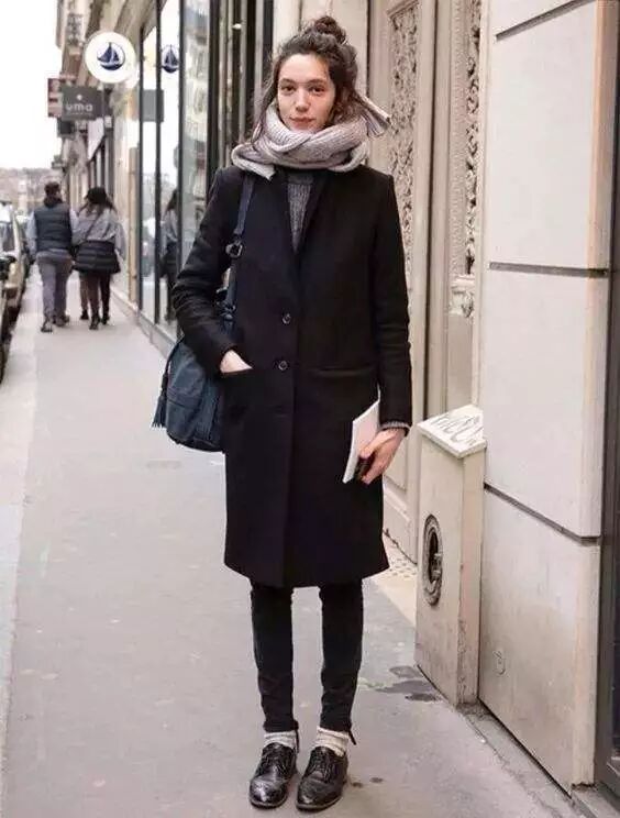 怕冷的人可以选择裤腿盖过脚面的长裤,一方面可以凹造型,另一方面还能让后脚跟不那么冷。