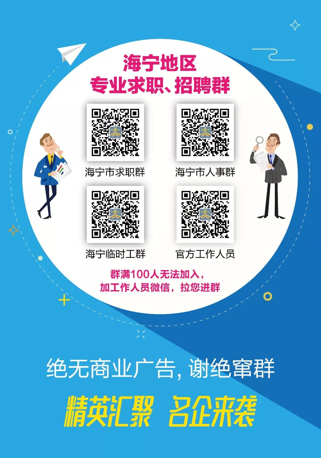 内贸、外贸业务员 8;涂贴操作工 10;双十一临时工 50;海宁华之杰复合新材料有限公司 7;倒丝工 1;统计采购 1;生产车工 5;光伏企业操作工 50;保洁工 1;KS经编挡车工 1