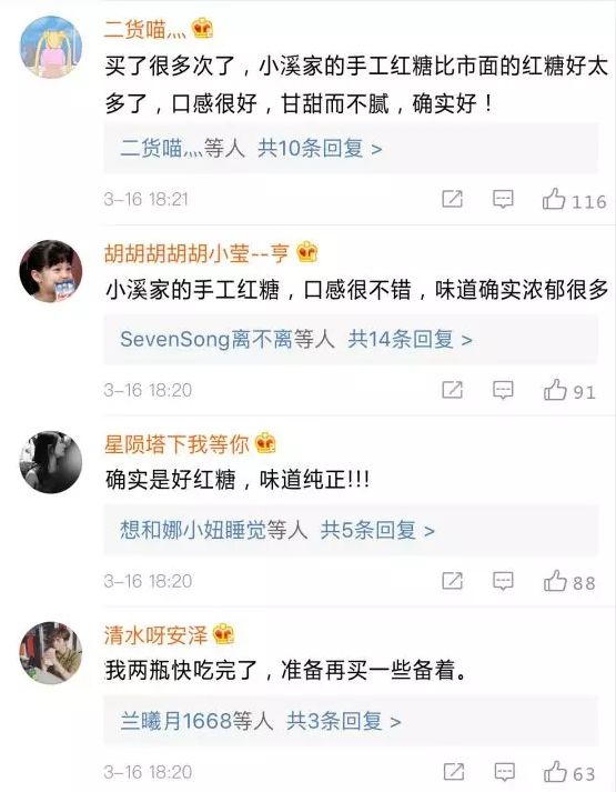 我也收到了许多读者的反馈留言,说这手工红糖确实不错,有的买了好几次了,以后准备就买她这家了。