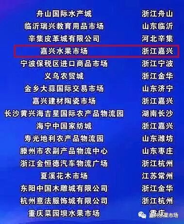 喜报:嘉兴水果市场再次入榜“中国商品市场百强”