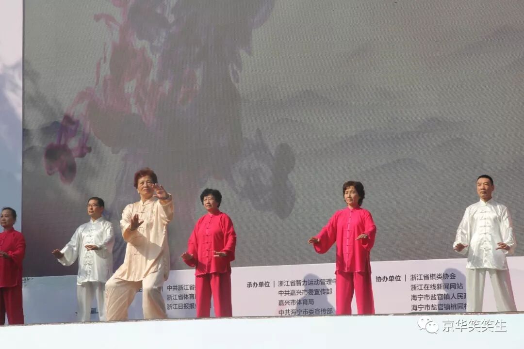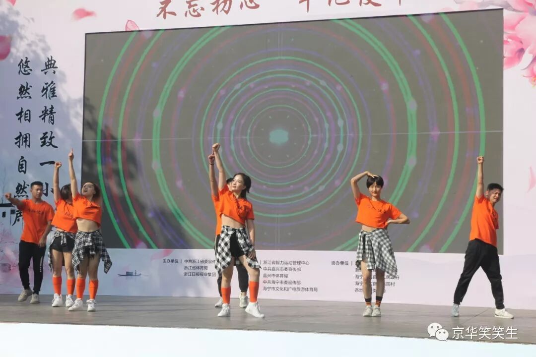 启动仪式前,进行精彩的舞蹈与体育健身主题的歌舞表演。棋类特色村代表盐官镇人大副主席、桃园村党委书记金正华汇报体育发展状况以及棋类活动开展汇报。