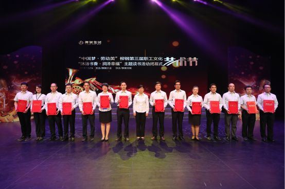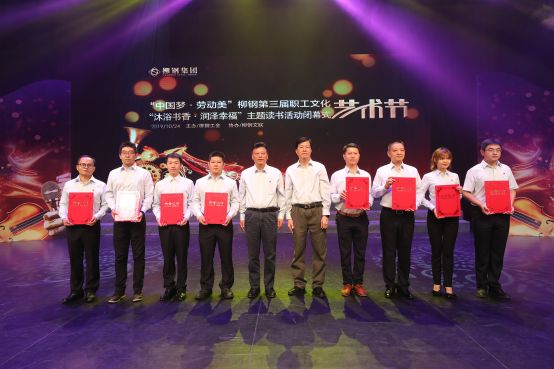 活动现场,与会领导为获得“中国梦?劳动美”柳钢第三届职工文化艺术节、“沐浴书香?润泽幸福”主题读书活动奖项的单位和个人进行了颁奖,并现场通过视频回顾了艺术节、读书活动精彩瞬间。同时,现场展演了“朗读?诵快乐”职工读书朗诵会、“好歌好曲大家唱”职工好声音展示活动、“好乐好曲大家奏”职工器乐展示活动、“好舞好操大家秀”职工舞蹈展示活动的部分优秀节目。