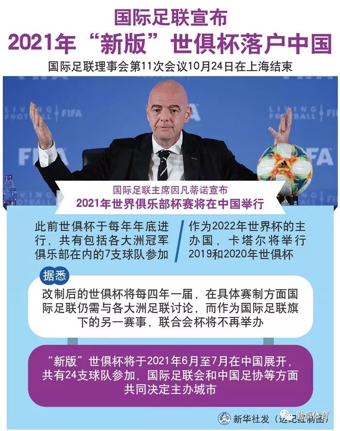 24日于上海结束的国际足联理事会第11次会议上,国际足联主席因凡蒂诺宣布,2021年“全新”的世俱杯将在中国举行。作为改制后的首届,2021年世俱杯“新”在哪里?