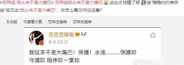 再说了,明明是好闺蜜,利用好闺蜜的伤心事来澄清自己,这样做真的好么?有没有考虑过梁静茹的感受?不过范玮琪大概也觉得自己做的太过分,所以发文之后秒删。但是,说出去的话就如泼出去的水,文字可以删除,网络还是有记忆的,对于范玮琪有一次的无脑行为,网友们也开启了一波批斗大会:你不是大嘴巴,但是请你闭嘴就行,解释还不如不解释。