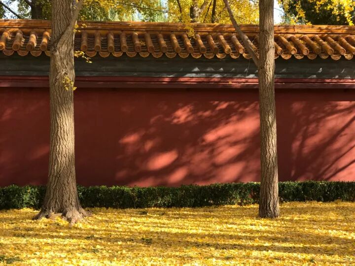 行走在被秋色包围的小路上,触摸着红墙青瓦的历史痕迹,仿佛是一场金碧辉煌的繁华旧梦。