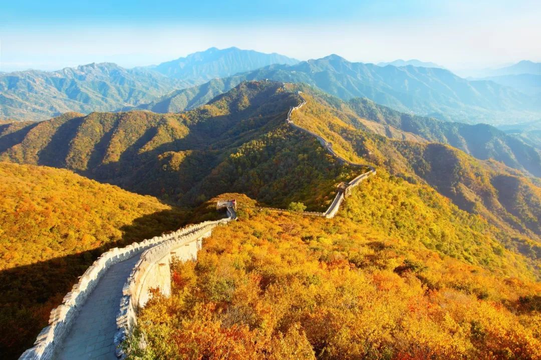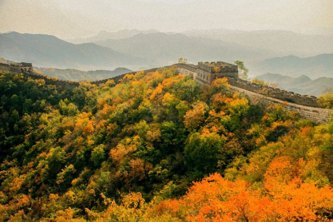 鲜红、紫红、金黄的叶片在山间绚烂铺开,一派浓郁的金秋景象,相信只要你秋天来过长城,一生足以回忆。