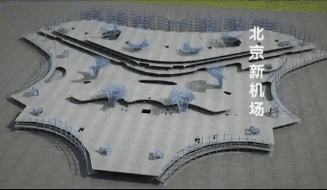 (图左为首都机场T3航站楼设计图,右为大兴机场设计图 图源:王晓群《五个机场航站楼的放射构型设计》)