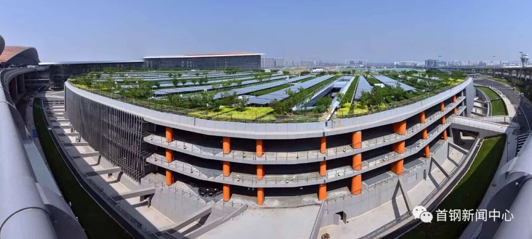 大兴国际机场停车楼位于大兴机场北侧,分为东西两个停车楼,地上三层、地下一层,共有4238个停车位,含630个充电车位,并配套10000平方米便民服务设施。