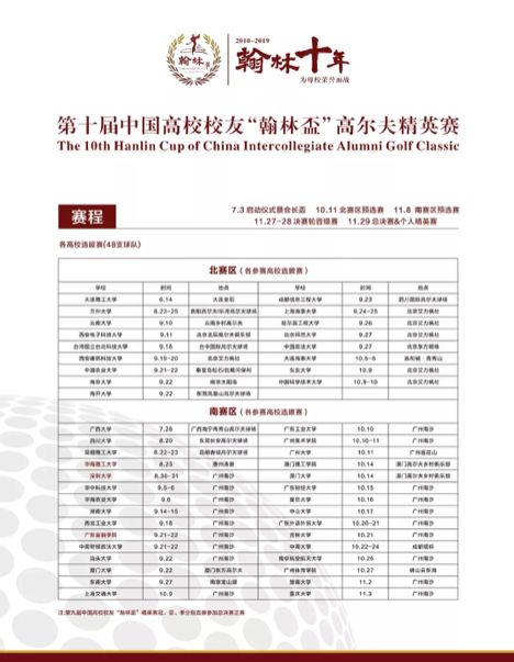 本届“翰林盃”从启动仪式开始到11月29日总决赛结束,历时五个月,分为各参赛高校选拔赛、预选赛、决赛轮晋级赛和总决赛四个阶段。经过层层筛选,最终诞生的10支球队将与上届冠亚季军在广州南沙高尔夫球会共同决出第十届中国高校校友“翰林盃”高尔夫精英赛的最高荣誉。