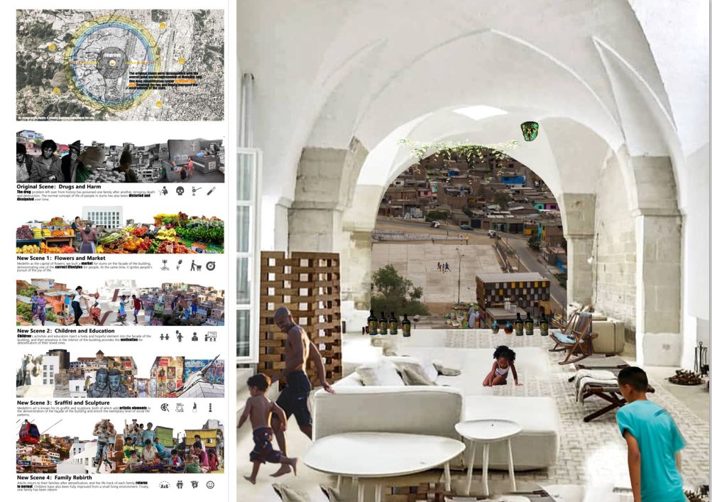 面对无比复杂的场地问题,用最简单的方式去回答,就像乘法5897855677*0=0. 一样。留白在绘画中是本身最不用修饰的方式,但是对于环境的把控力是最为重要的。所以我们用以复杂的情感,细腻地解决每一个设计问题。戒毒面临着太多的不可控性,而室外儿童活动同样也是。而这两个百变不可控的方式因为这个0而变的简单纯粹。那建筑的力量也就因此呈现,这将会是最有力的乐活空间,它具备干掉一切极端环境的能力。
