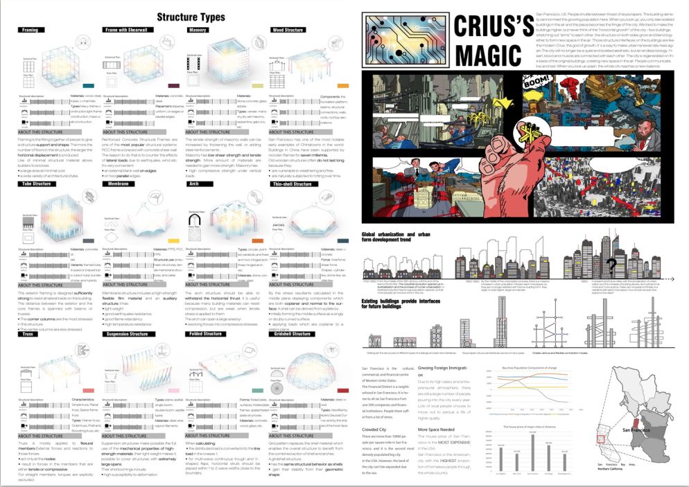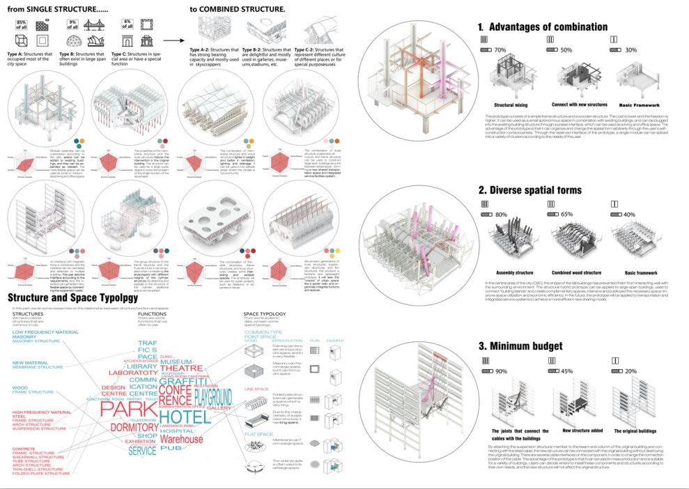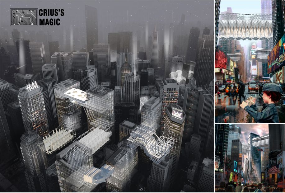 我们曾想方设法地让建筑越来越高,却从没想过让城市“横向生长”——两座大厦面对面伸出“手臂“,相互借力;两侧的结构生长交融,在空中形成需要的空间。建筑的相互借力让它们保持平衡,这就像古希腊神话中的生长之神Crius,让城市的更新率以另一种方式上升。城市将不再是宁静孤立的美学,而是生生不息的生物学。心脏、血液、肌肉,由结构余力交织而成的骨架连接在一起,互相连接。城市,在原有建筑的基础上再生,在空中创造了新的空间。人们在这里交流、生活、休息。当你再次抬头仰望时,整座城市达到了新的平衡。