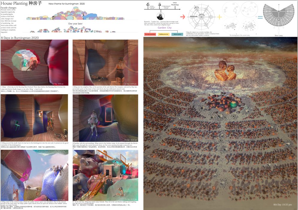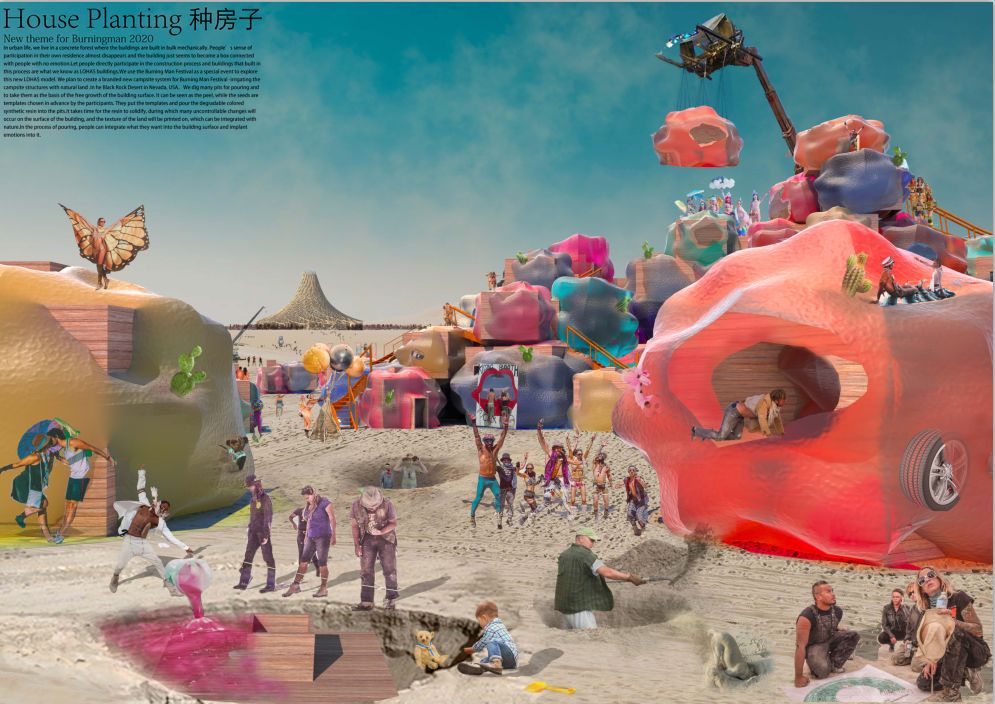 都市生活中,我们居住在一个水泥森林中,建筑大多机械化量产,人们对自己居所的参与感几乎消失,建筑似乎只是变成了与人没有感情联系的盒子,但这种没有任何感情的水泥盒子,成了许多朝五晚九工作的人们奋斗一生为之拼搏的东西,这不禁让我们思考,这值得吗?就像直接买来的食物不如自己辛勤劳动收获的可口,我们将我们的设计视为一种返祖现象,让人直接参与到建筑的建造过程中去,将个人感情与努力融入到建筑中,得到收获的快乐,这就是我们所理解的乐活建筑。由此我们企图设计一种建造方式,让人们可以像种植瓜果蔬菜一样,种出带有自己情感的,真正属于自己的房子。这样的房子不再是冰冷的居住外壳,而是人们个性与感情的表达,这样的建筑空间也被成为人们心中真正的乐活空间。