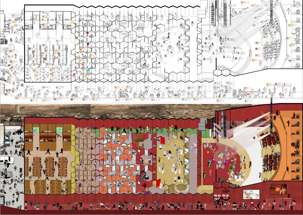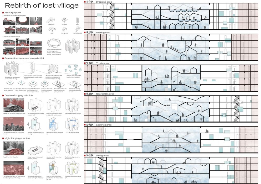 城中村,这个词似乎是这些年最令人头疼的东西,它是城市快速发展留下的问题产物,于是有更多的人关注他们,用各种各样的方式去解决它。但是大家的做法似乎过于简单粗暴。但是作为建筑师,我们该做出更平滑的方式。大家发现一个事情就是统一搬迁后消失的是原始的生活方式,人为何而活着,不就是为了生活吗。所以保存人们的生活方式才是建筑师该做的事情,我们的建筑其实就是一个生活方式的承载,它没有固定的功能,它的名字就是生活方式。夜晚降临,城市的光辉给了它一个新的动力,村庄若隐若现于城市深处,仿佛从未消失过。将平凡的问题游刃有余地解决,才是伟大的建筑师。