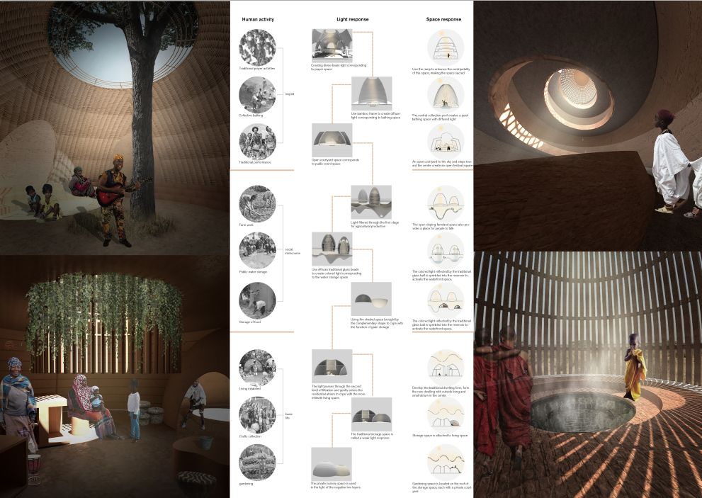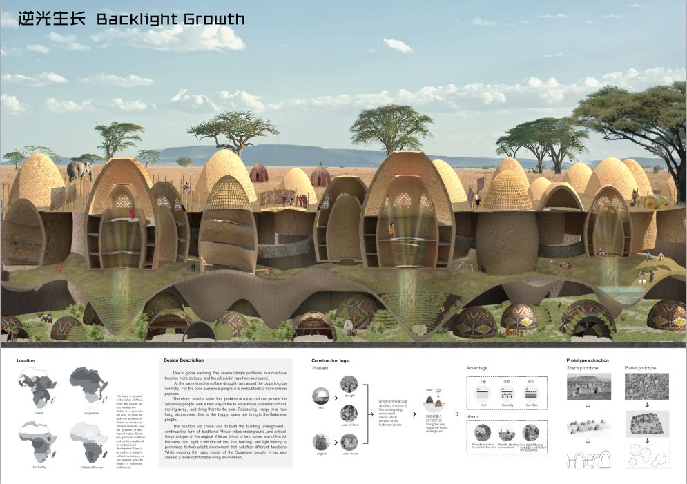 非洲是一个神秘的沃土,提到这个地方似乎人们都喜爱用贫穷落后来贴上标签。但是大家没有意识到一个问题就是离赤道最近的它,作为第一个感知温度的地方,拥有绝对的地理优势。这些年本土建筑的崛起,非洲建筑师也该有它的方式去影响世界,如同黑豹里面的瓦坎达那样,希望有一天他们可以震惊世界,贫穷于落后仅仅只是障眼法而已,巨大的地下城市通过建筑的方式对自然光进行解剖,创造可以征服太阳的国度,在离太阳最近的地方冉冉升起。