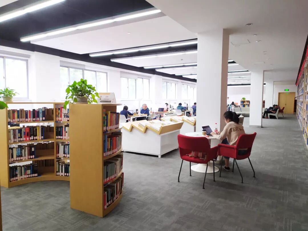 设计创意学院图书馆在设创学院1楼拥有着同济大学图书馆分馆,需要刷一卡通入馆,在每桌下面有充电插头,这对于查论文、画图纸和做设计的小伙伴们是必不可少的配置。