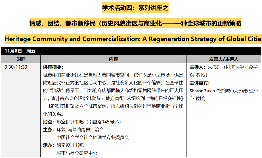 为此,从学术和实践层面探索城市更新的方式与途径、寻找城市与社会多元治理的各种可能性具有重要的现实意义。本次学术活动将主要聚焦“城市更新与社会治理”议题,举办一场国际学术会议、一场国内学术会议、四场工作坊。其中国际学术会议邀请了来自美国、法国、日本、中国等不同国家、不同学科的城市领域学者和专家,就公共空间与社区建设、城市空间研究、文化与空间、空间养老与健康、空间与人口等主题展开深入交流与讨论。国内学术会议主要关注我国的城市更新与社会治理状况,讨论主题包括社区微更新、旧城改造、历史街区保护、人口迁移等。此外,我们还将邀请国外专家进入中国田野,开展四场相关主题的工作坊,以期让研究回归社会,在观点的碰撞中探索未来城市发展之路。