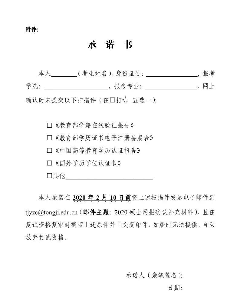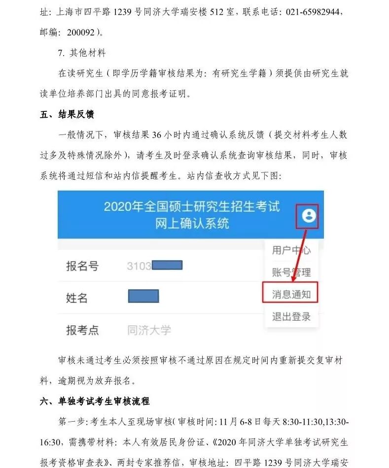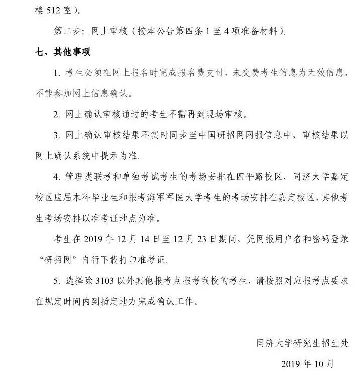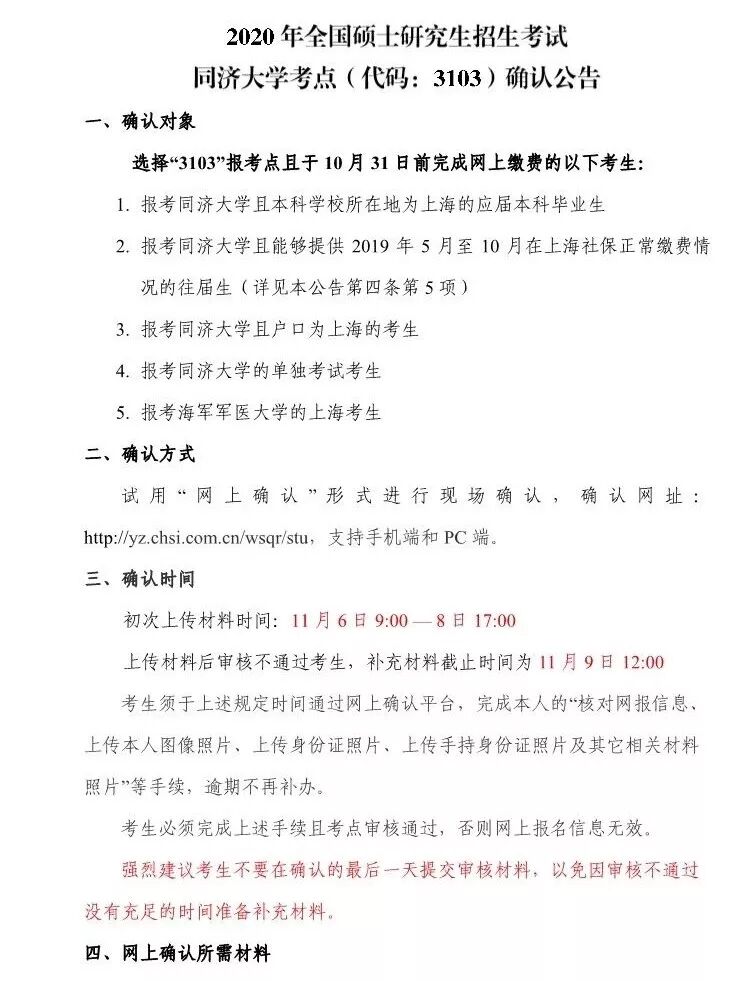 【网报确认】2020 年全国硕士研究生考试同济大学考点(代码:3103)确认公告