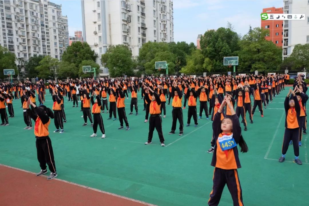 首先是考验团队精神的项目——广播操比赛,各个年级的同学依次上前,在操场中央列队,准备接受来自校领导的检验,展现出自己不懈努力的成果!同学们的动作整齐划一,力道饱满,在操场上形成了靓丽的风景线!