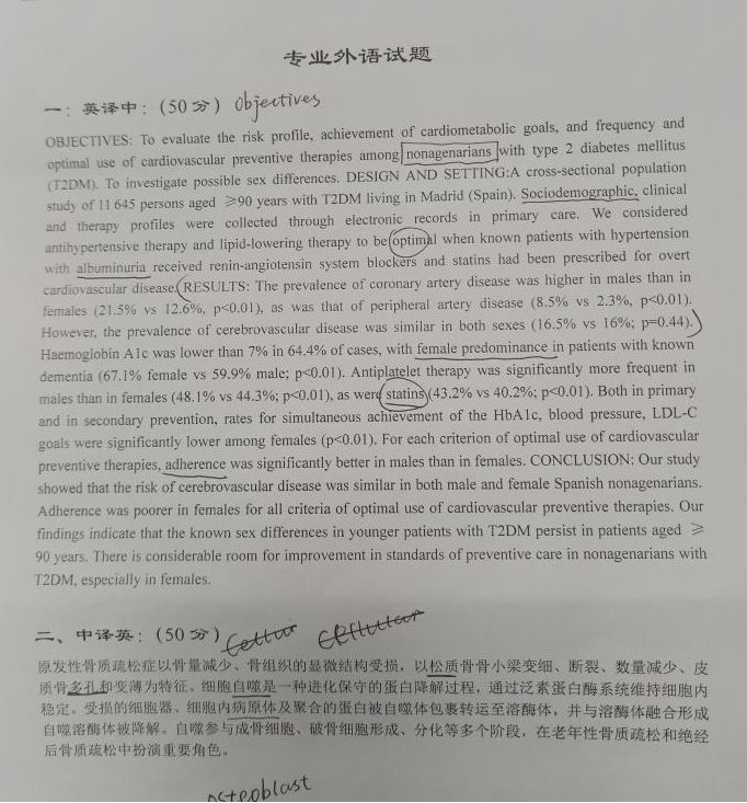 下午的笔试时间是2小时,占比重40%。专业英语的考核形式是中译英和英译中,题目就直接放图吧。