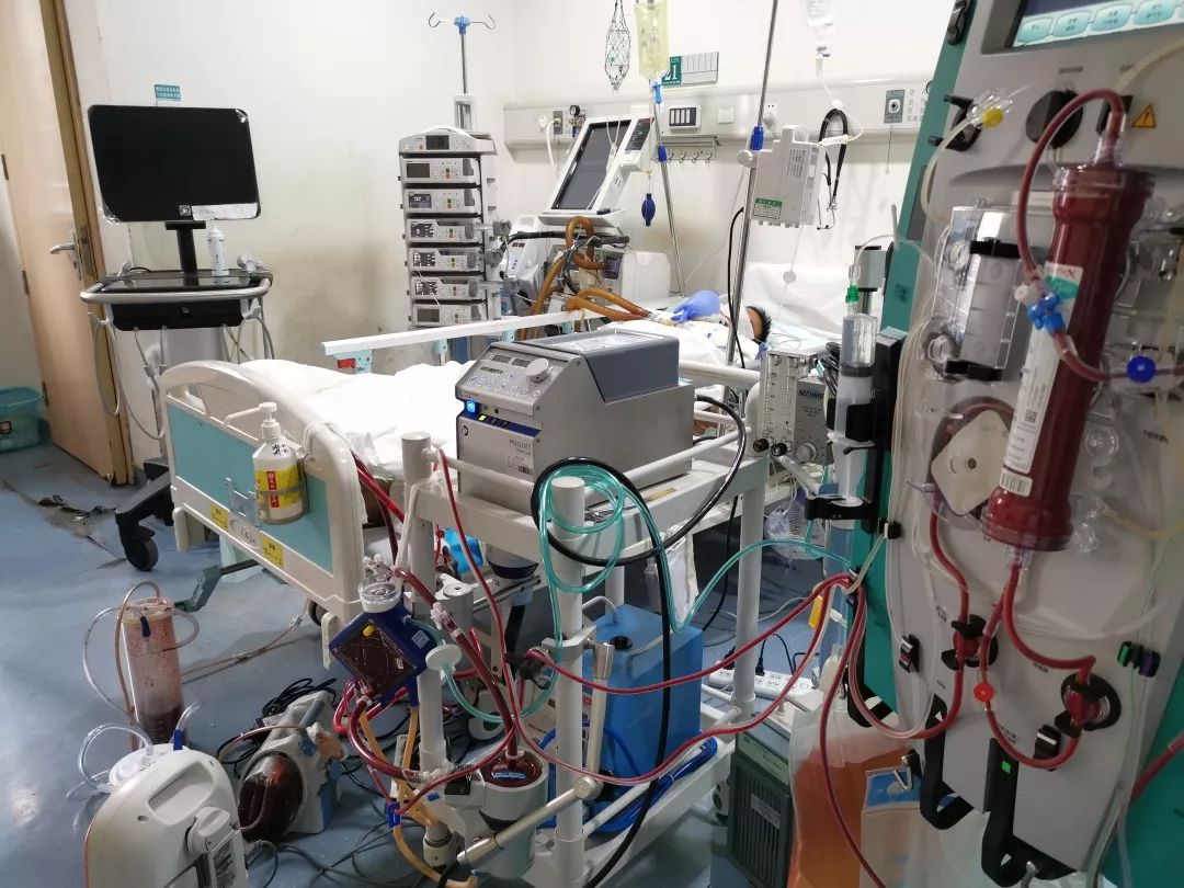入院后,救治小组立即有条不紊地展开各项抢救和治疗。患者长时间缺血缺氧导致多脏器功能衰竭,出现心脏、呼吸、循环、肾脏、肝脏等多器官衰竭,合并严重凝血功能障碍、缺氧性脑病,严重酸中毒、高钾,重度全身水肿。急诊医护团队给予了患者包括ECMO呼吸循环支持、床旁血液透析、呼吸机辅助通气等生命支持以及对症支持治疗。