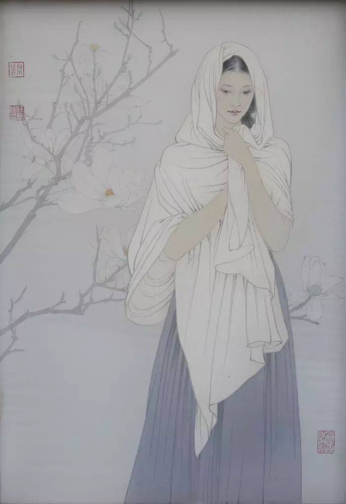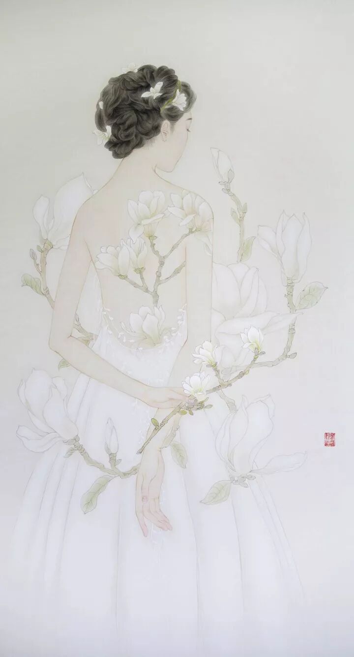 《玉兰》工笔画