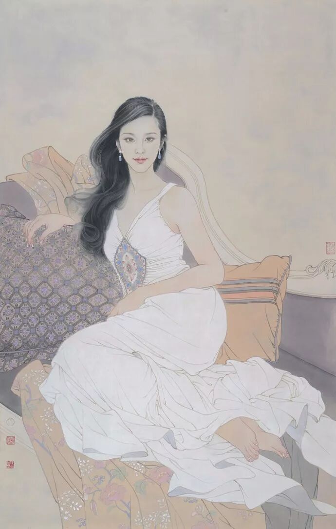 她用西方的油画把东方的柔美