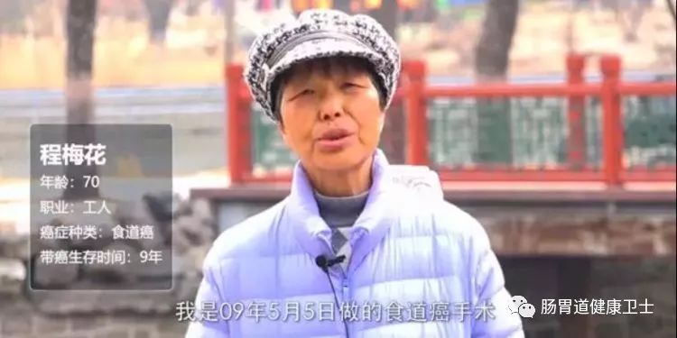 ③ 姓名:程梅花;年龄:70;职业:工人;癌症种类:食道癌,带癌生存时间:9年。