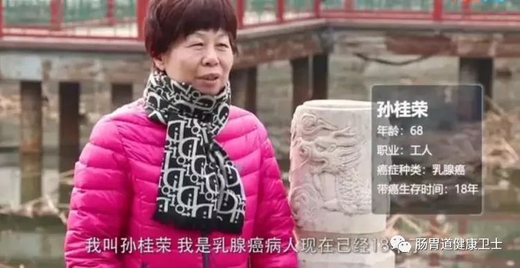 ⑥ 姓名:孙桂荣;年龄:68;职业:工人;癌症种类:乳腺癌,带癌生存时间:18年。