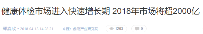 更有专家预测,2018年“中国健康体检市场”年产值,