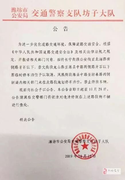 城市通(潍坊之窗APP)网友“就再多一秒的爱依”发帖:取消一些路段临时停车位,优化道路交通环境。根据规定,拟将长宁街段公安街至北海路南侧路牙石以下、崇文街段龙山路至潍县中路两侧路牙石以下原临时停车泊位予以取消,凤凰街段潍县中路至坊泰路两侧辅道内相关部门未在此路段施划停车泊位,禁止停放车辆。